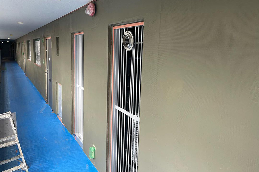 一般左官工事、外断熱施工、漆喰仕上げ、外壁工事、土間打ち・モルタル施工など左官職人としての技術を生かした作業を行います。